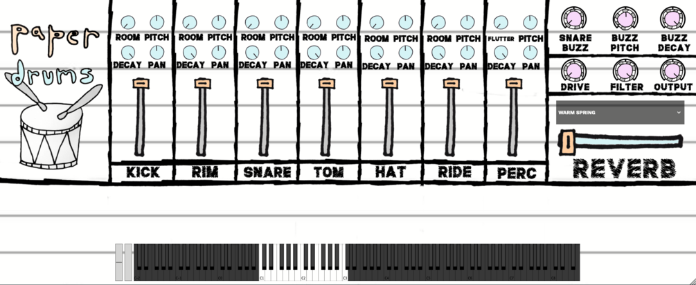 Paper Drums is a virtual instrument capturing the sound of my fluffy, soft, dead drum kit.